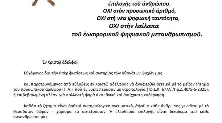 1_14.12.2025_ΣΥΝΑΞΗ περι ΠΡΟΣΩΠΙΚΟΥ ΑΡΙΘΜΟΥ υπο ΑΓΙΟΡΕΤΙΚΗ ΚΕΛΛΙΩΤΙΚΗ ΦΩΝΗ.σελ.4. Χαιρετισμός από το Άγιο Όρος για την συγκέντρωση του Κινήματος 21 που